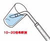 バキューム、排唾管に使用する場合は、ユニット毎に10~20倍希釈液を1L吸引させる